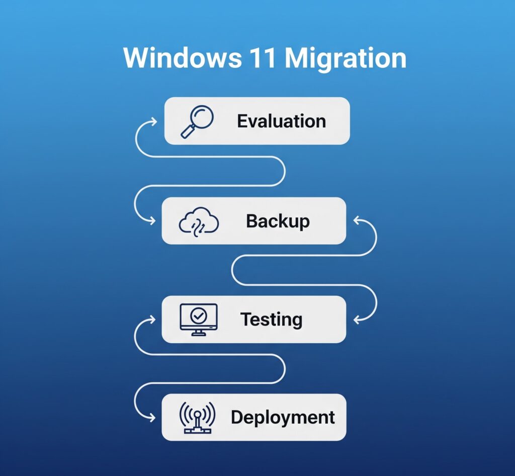 hoja de ruta clara y accionable para las empresas que planean o necesitan migrar de Windows 10 (u otros sistemas) a Windows 11, destacando las mejores prácticas.